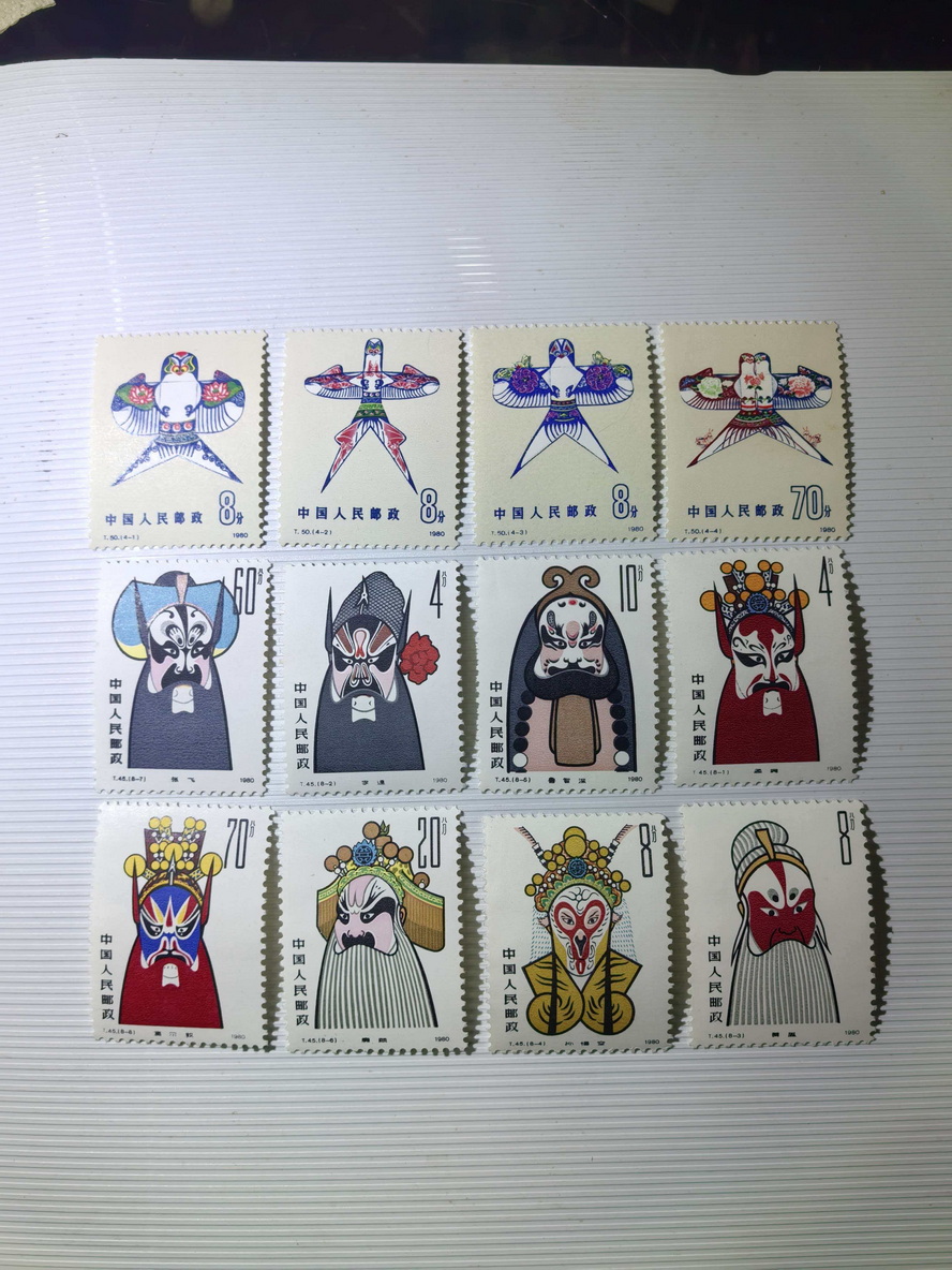 售:二二八、陶瓷2套一起走100元;西厢记,厂铭,边有剪齿孔折,儿童画选厂铭,2套一起走110元; 梅花鹿 、古琴、 邮政运输 、风筝、脸谱 一起走440元,包挂。