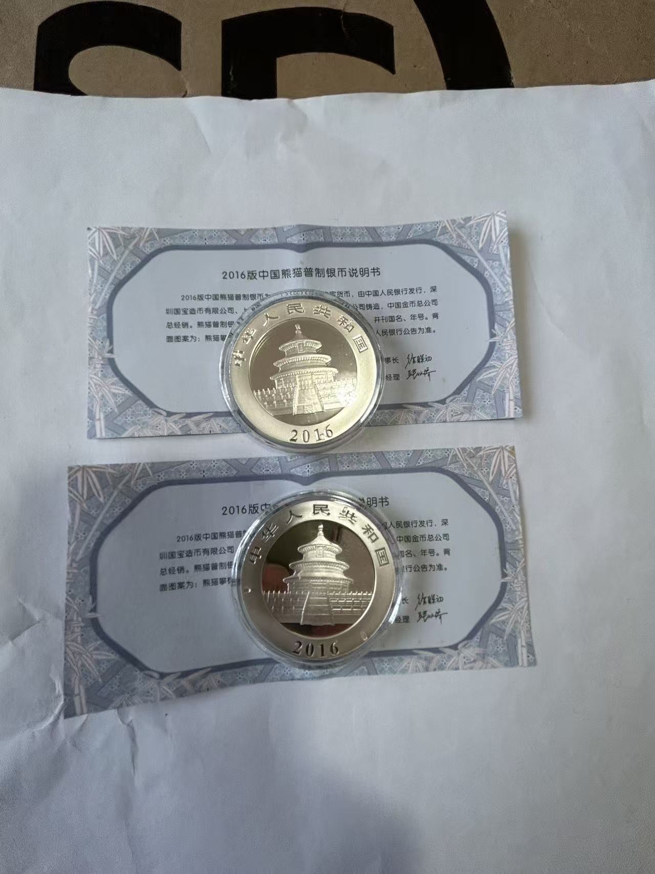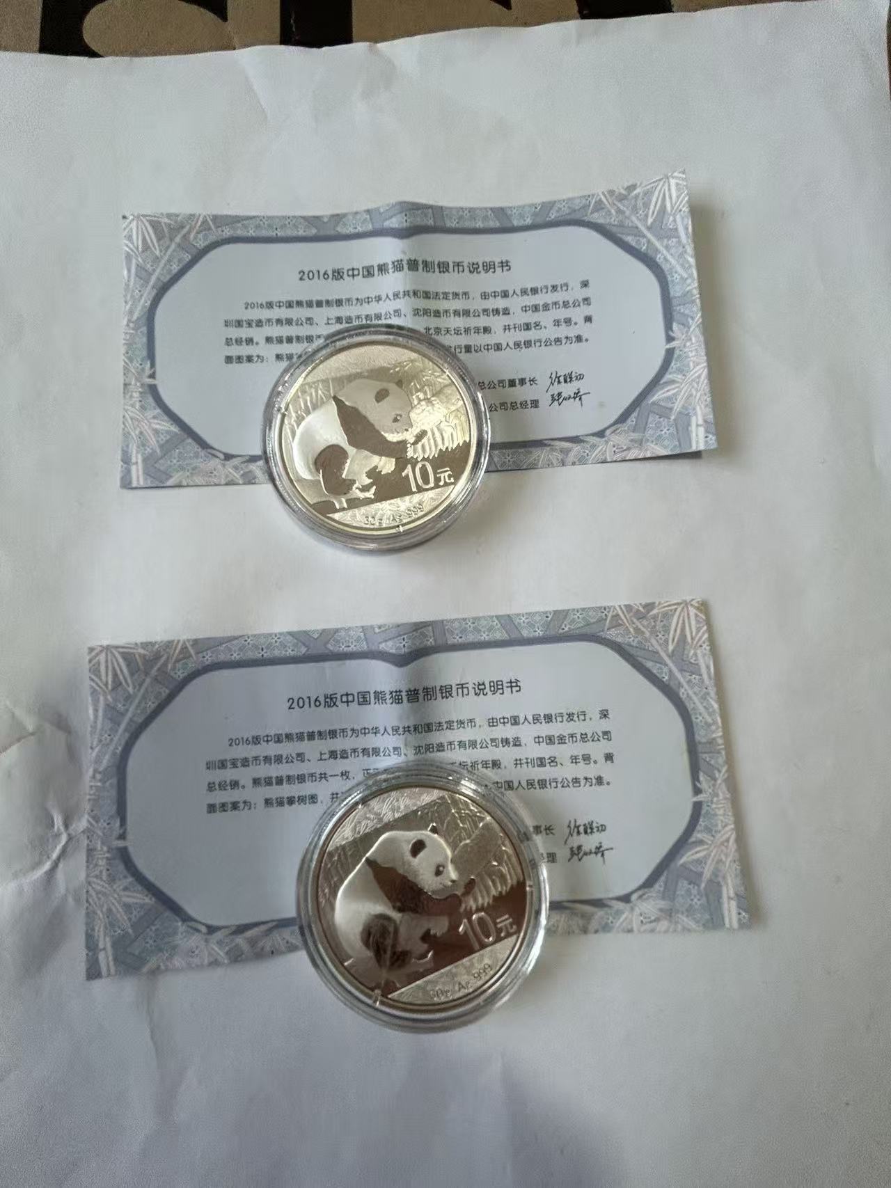 售16年熊猫银币2个