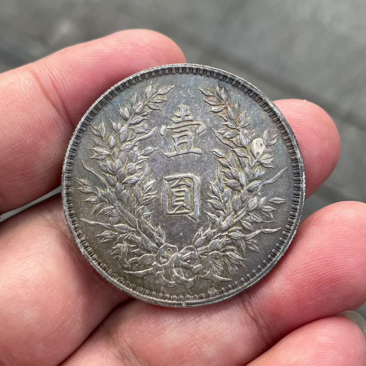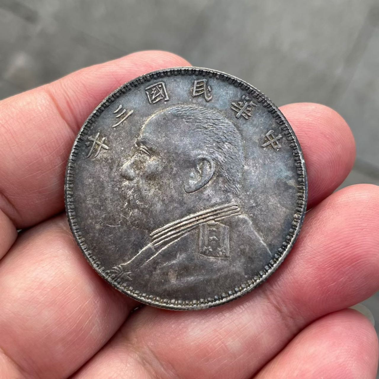 原包浆老五彩O版三角圆!
