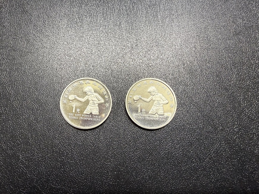 → 售1995年世乒赛精制币2枚。