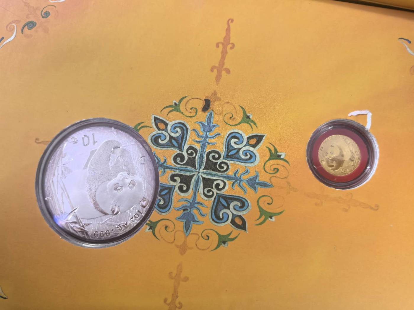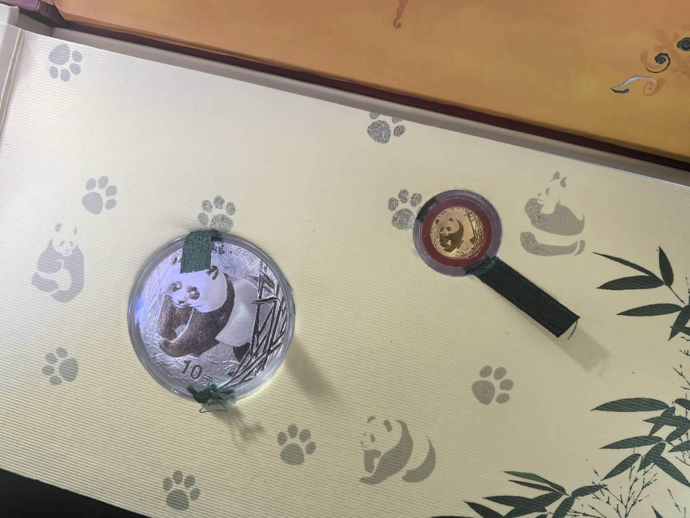 → 出2001,2002熊猫金银套装一金一银