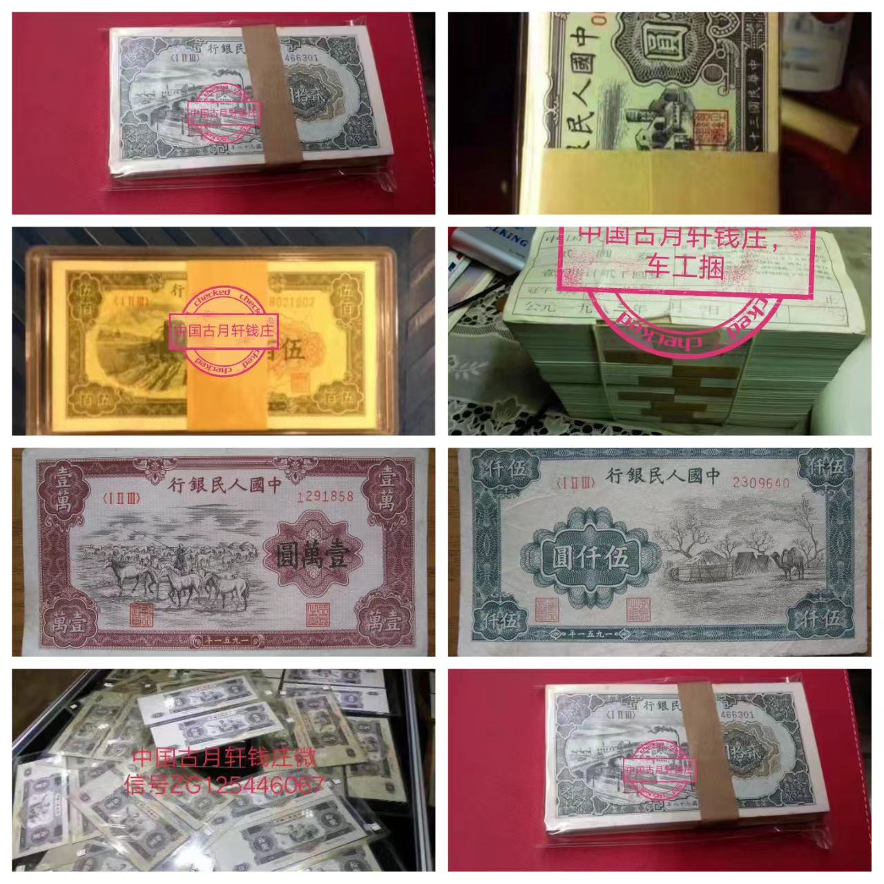 急需要,高价长期收购第一版,牧马图.蒙古包.骆驼队.马饮水.詹德城,二版,收购大黑拾,各品都要,大黑拾10连,三元连号,红五连号,黑一元捆货,红一元刀货,蓝两元刀货,黄五元刀,海鸥五元刀货,三版,收购车工捆,枣红刀,背绿刀,背水刀货,四版,收购1980年50元捆货刀货,1980年100元刀捆货。全国范围内上门收购。