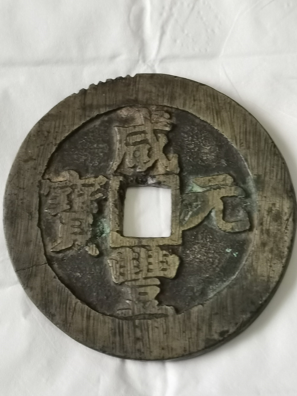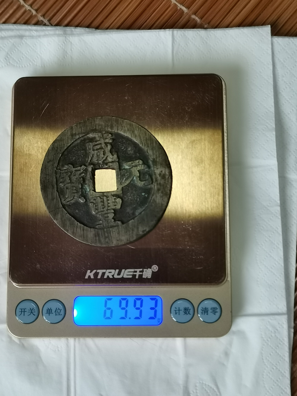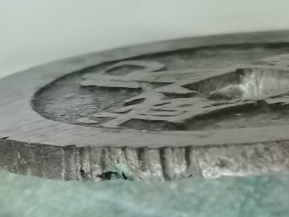 早期厚重版宝苏当百,直径61.7~62mm,重量69.93克。有如下缺陷: