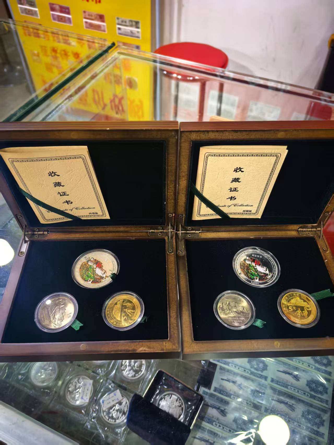 出售青藏铁路通车银章+新老西藏币共2盒