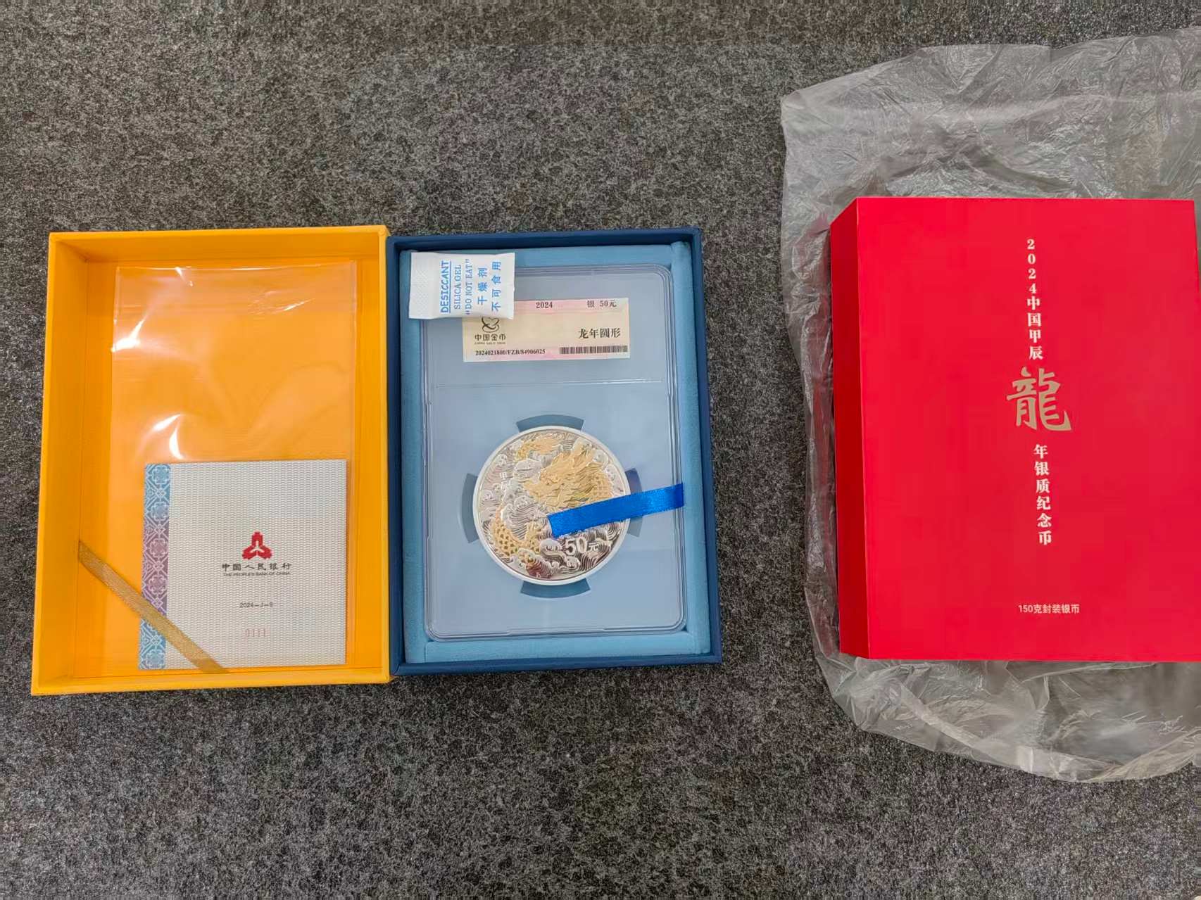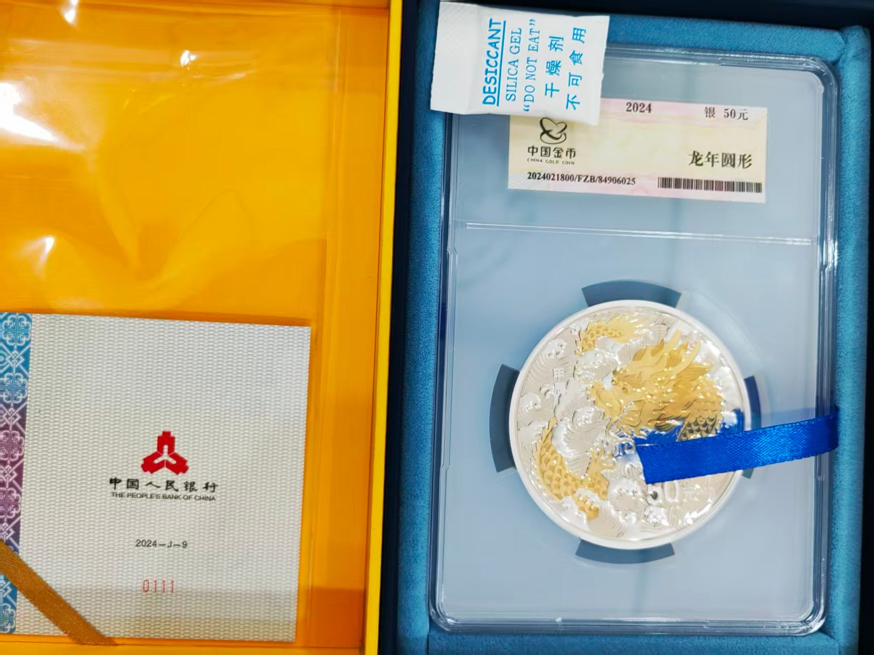惠售24年金总封装150克大彩银龙,配置齐全,证书靓号: 0111 售价15888元/枚 议价勿扰 电联确认 包品包邮.