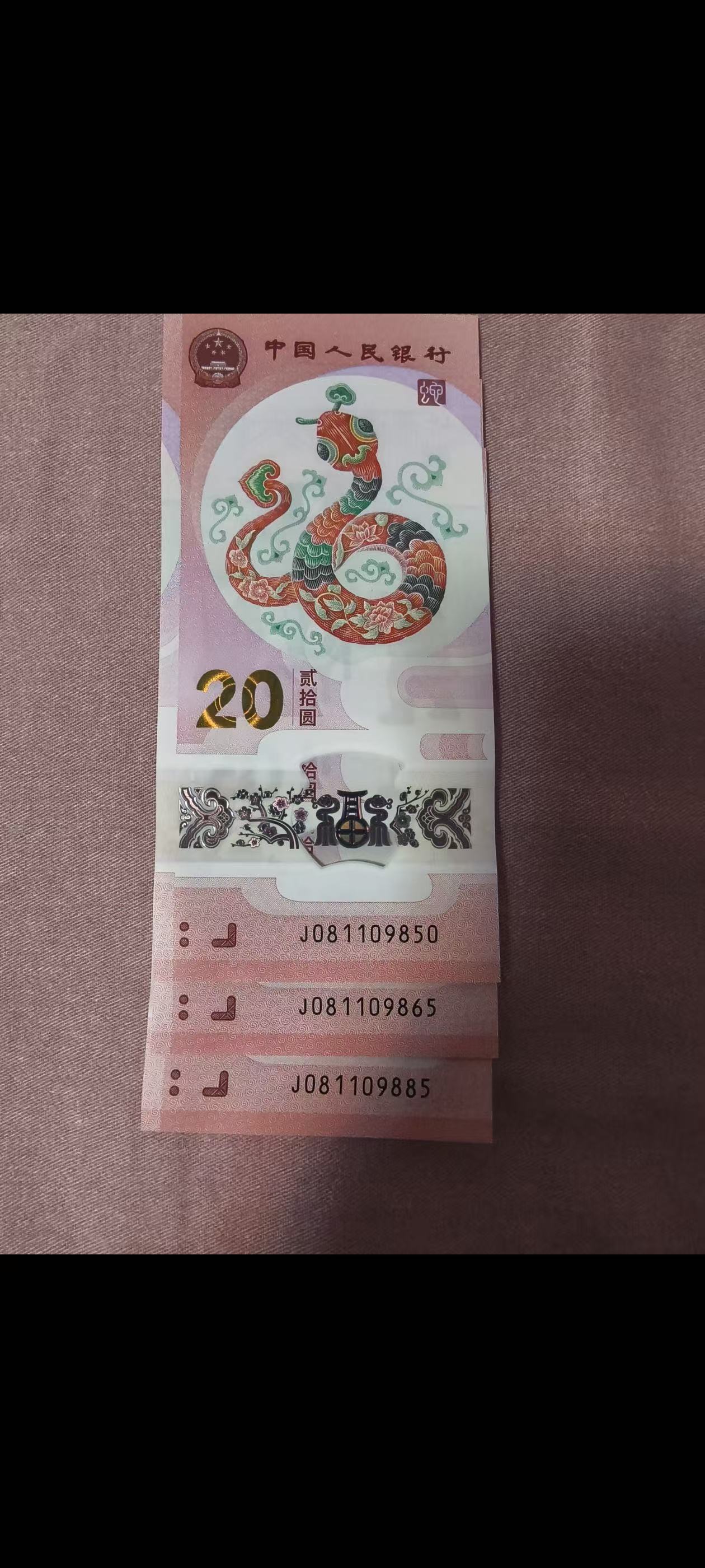 低价出3张蛇钞金马号