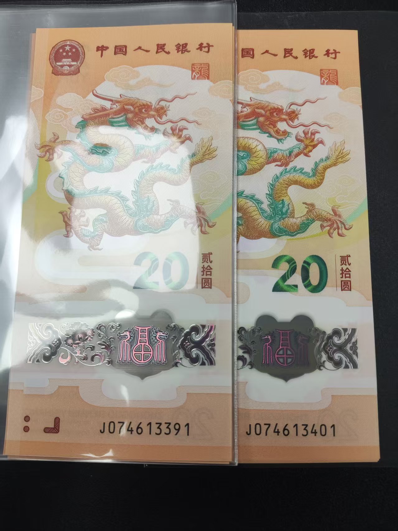 如图,小龙钞20连(2组标十),合售1900元