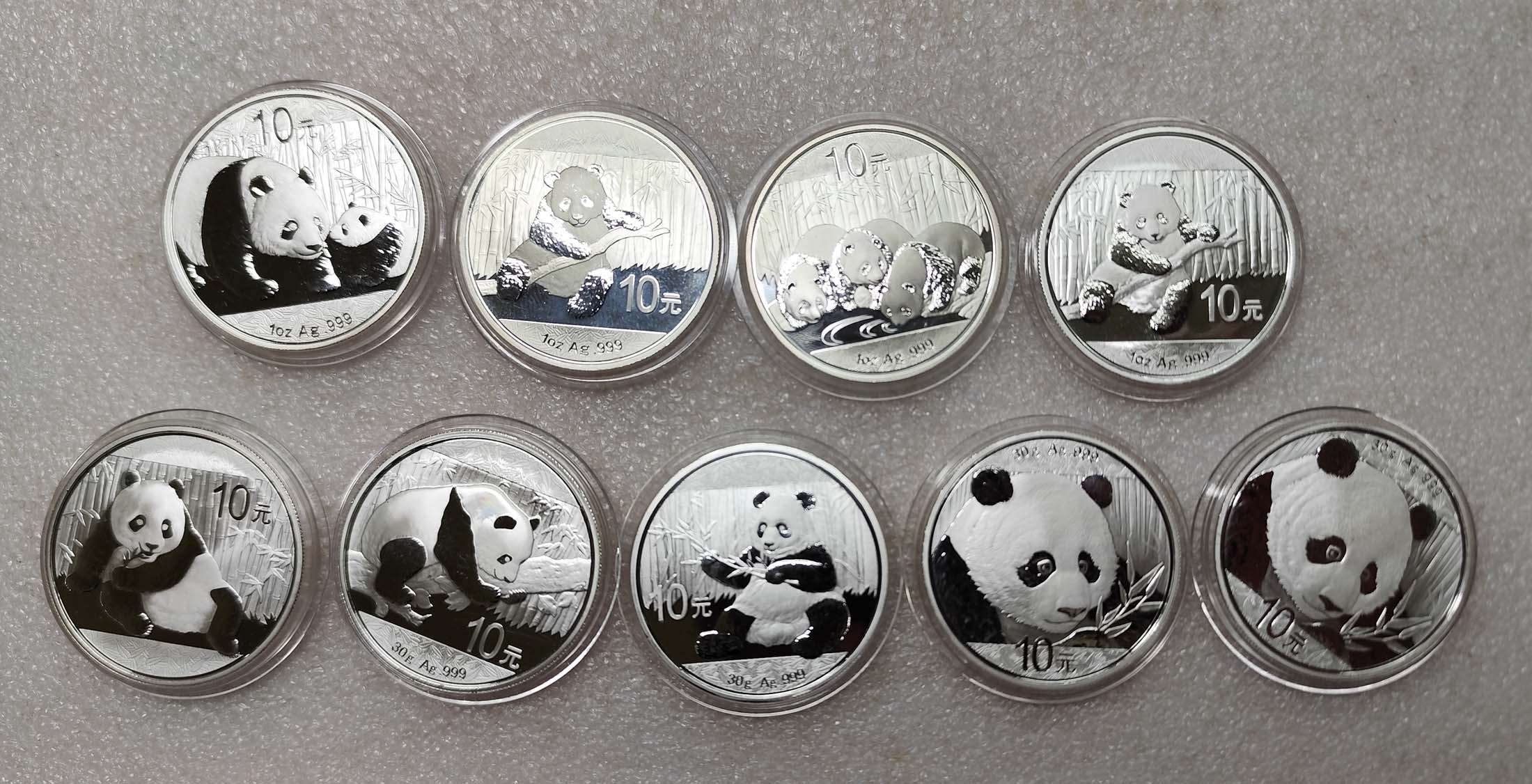 11 13 14 15年 一盎司的银猫5枚,单价680元一枚!16 17 18年 30克的银猫4枚,单价660元一枚!一起走共计6040元包快!