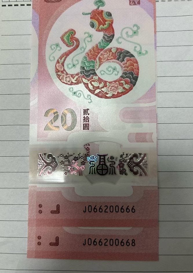 → 出蛇钞026,0268各一张裸钞