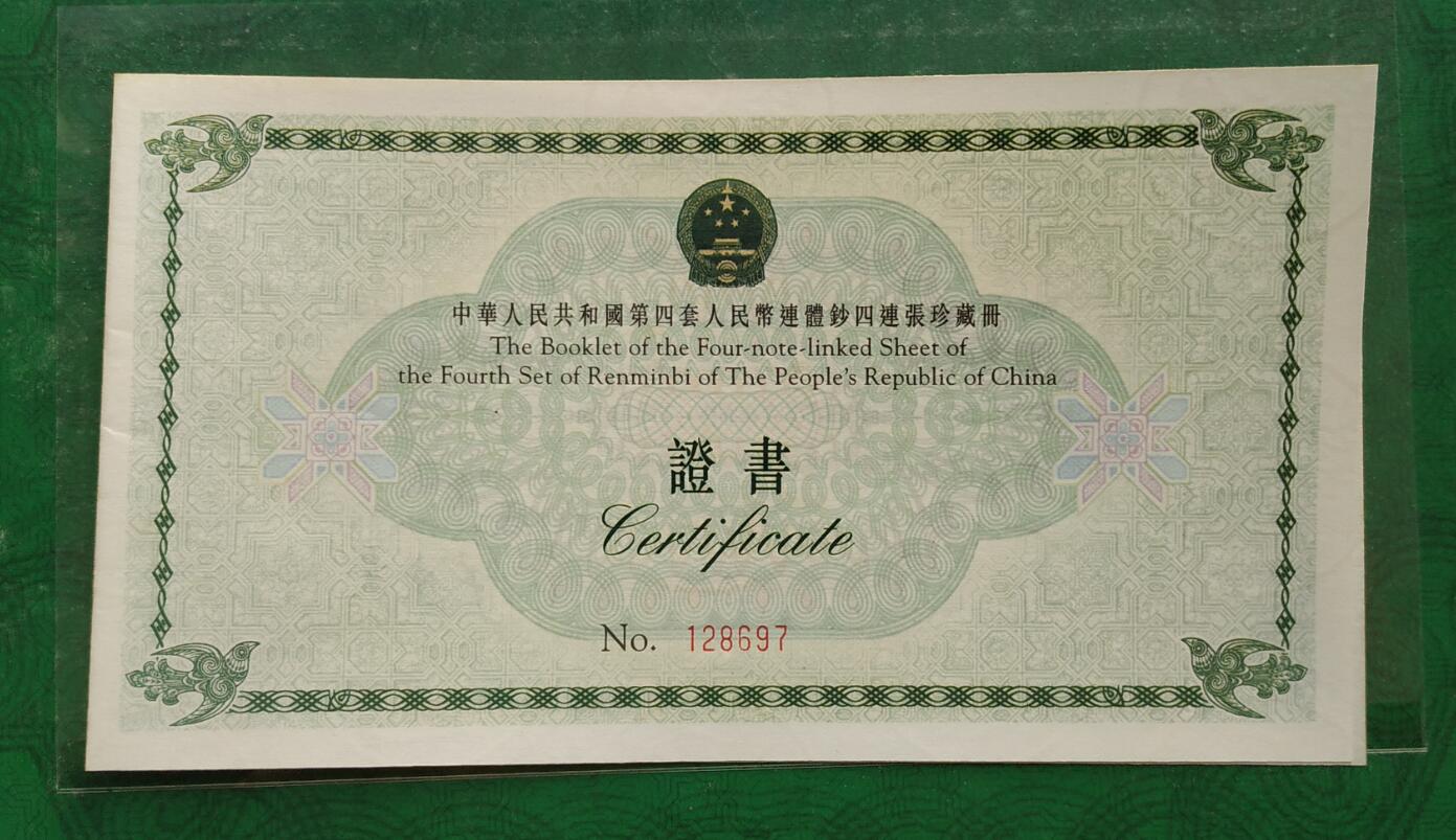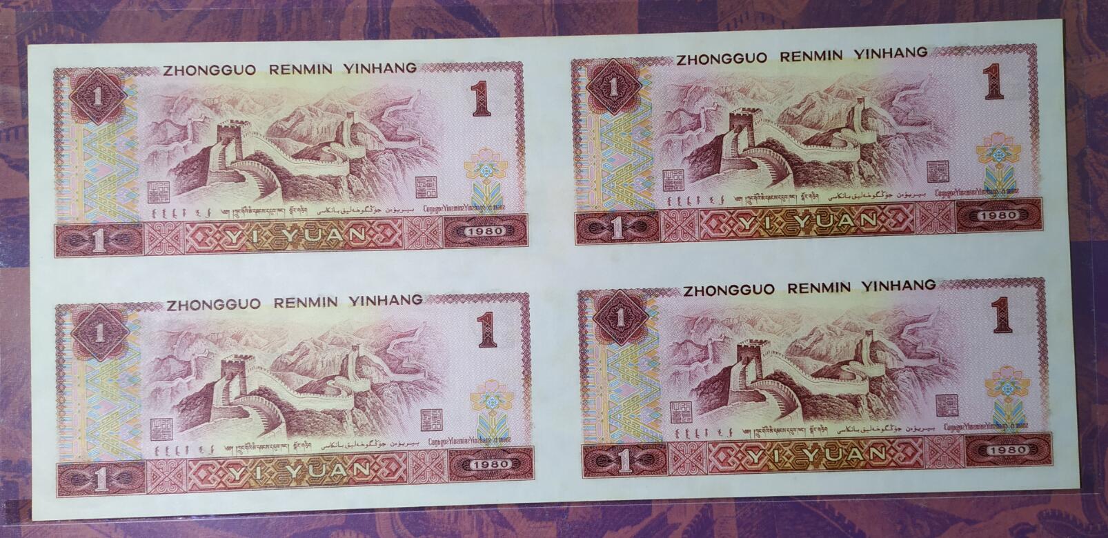 出售长城小四1本,长城八连体裁下来的,证书不对号,2元1元1角有黄,豹子号6999,带两个全程倒置号,售价6999元。