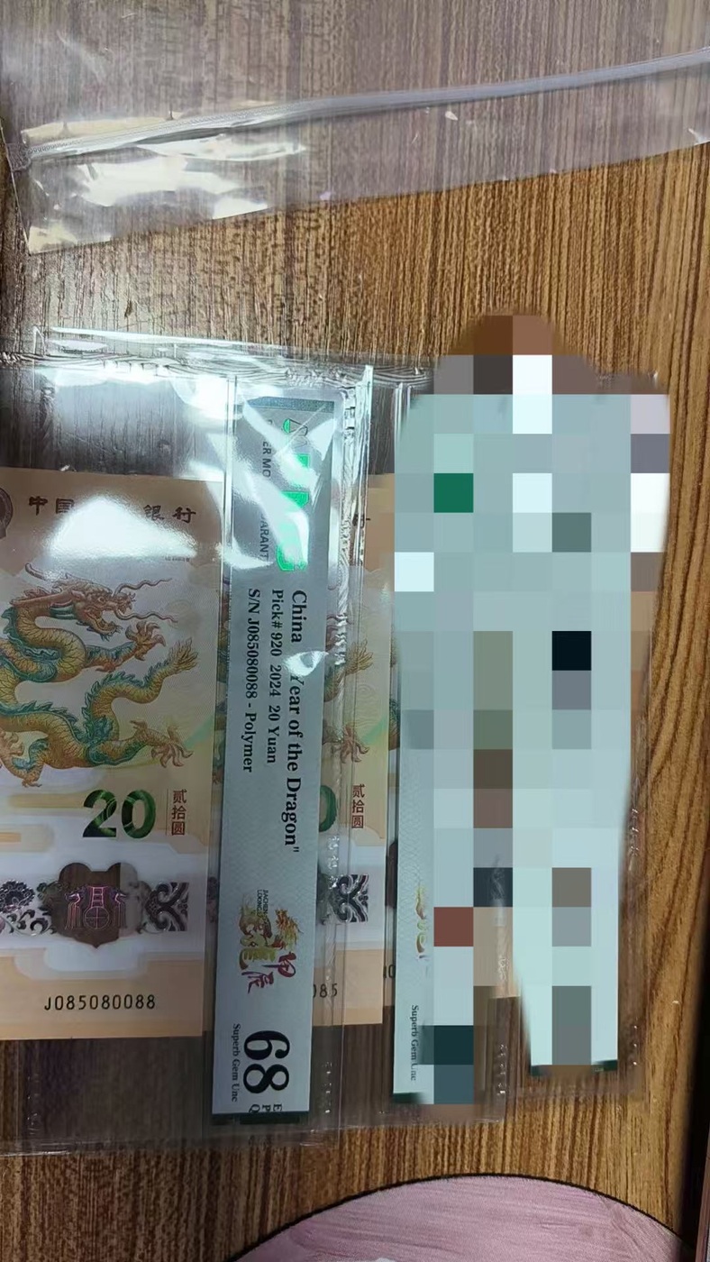 → 出一张058 尾88 独5。 龙三龙钞pmg68分