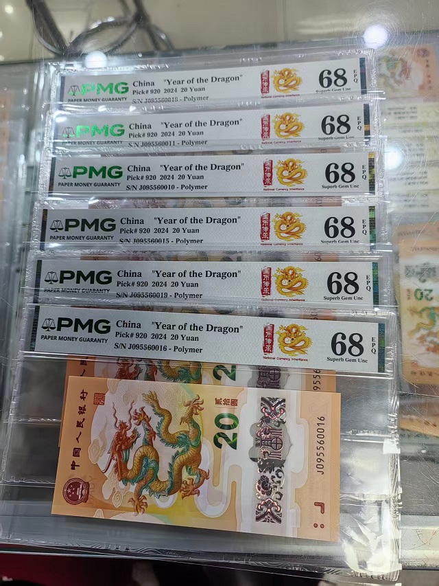 小龙钞095头九五至尊015689金马车尾8PMG68分单张号码如下