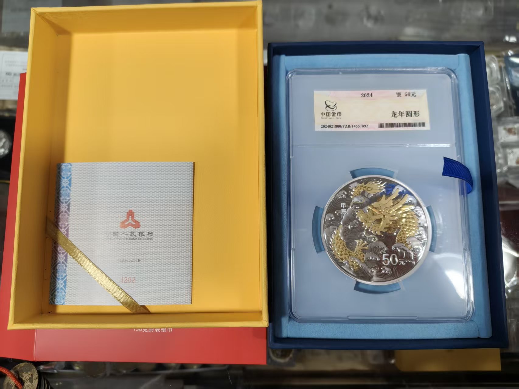 24年150克水龙金总封装银币!号码1202无3456789