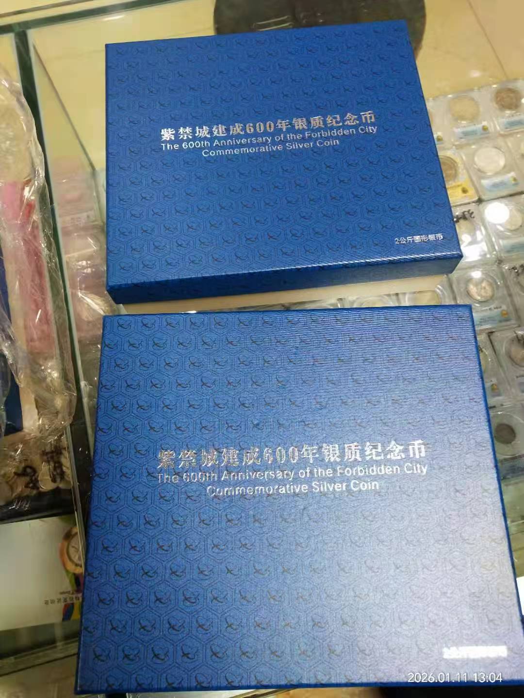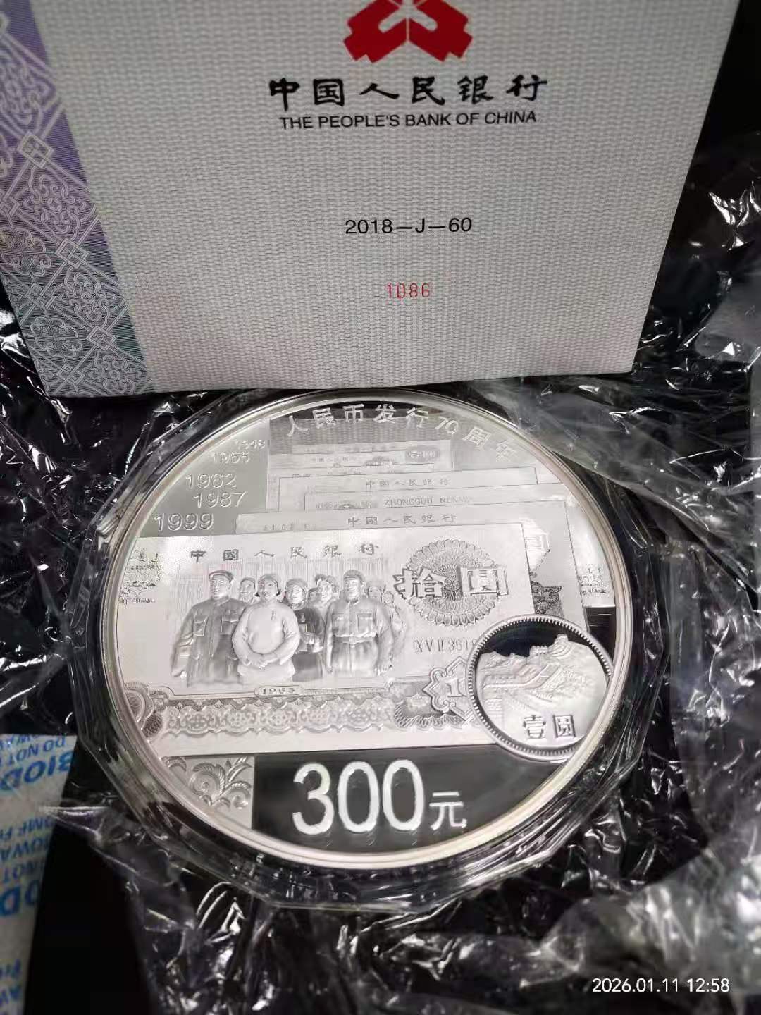 紫禁城公斤银币66000元(证书倒置号火119),人民币发行公斤银币58000元(证书倒置号)