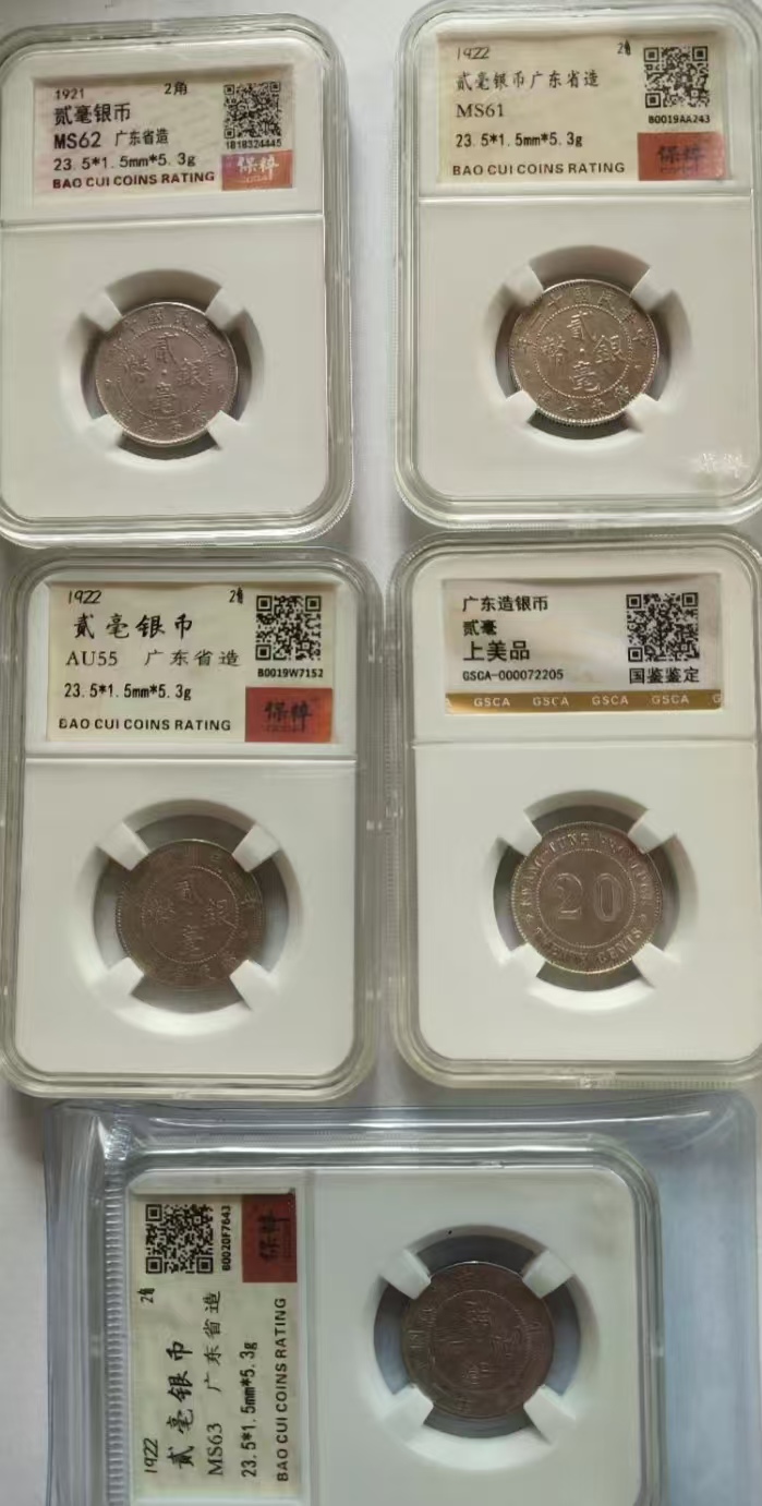 出银币贰毫五枚,有九年,十年和十一年的。评级保真品美,微信104195885看图。150元每个一起出