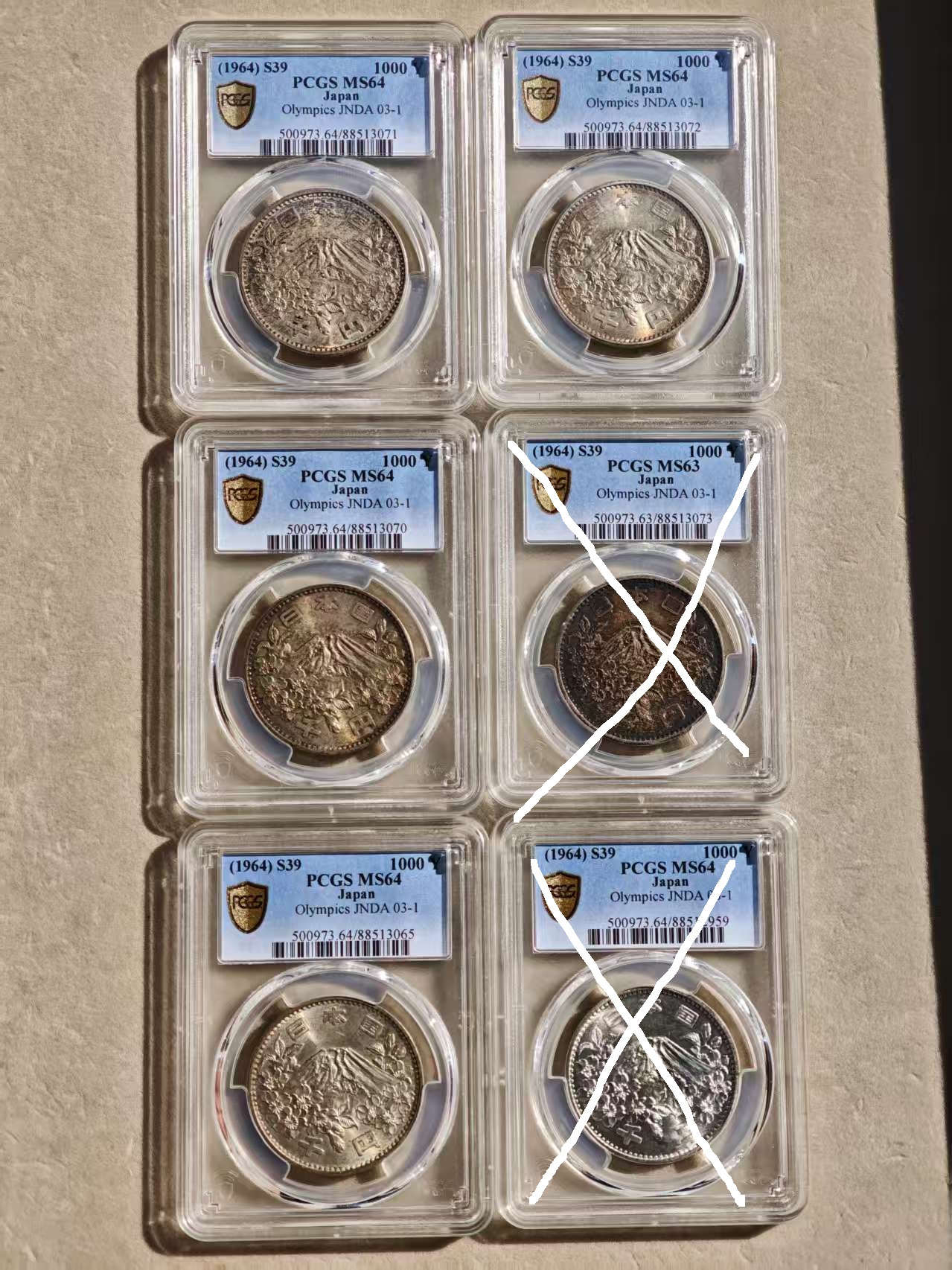 → 银价出PCGS-MS64分 日本奥运1000元大银币 4枚