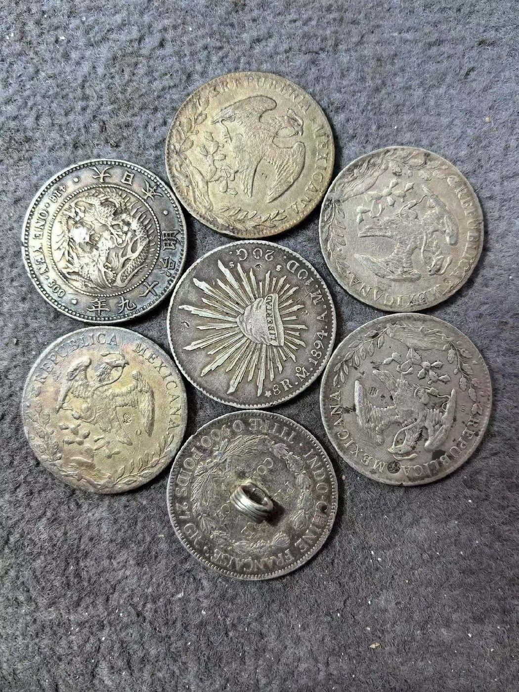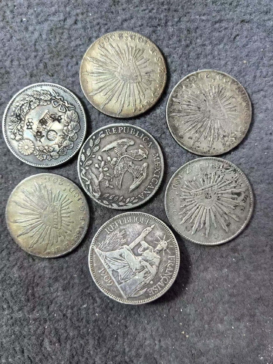 鹰洋五枚日本龙一枚坐洋一枚一起出