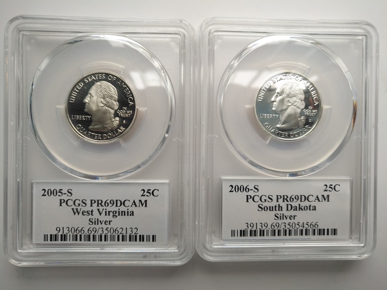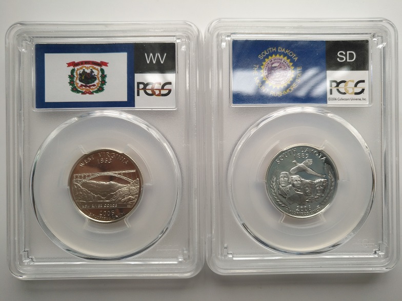 2005年美国西弗吉尼亚25美分精制纪念银币;2006年美国南达科他州25美分精制纪念银币;