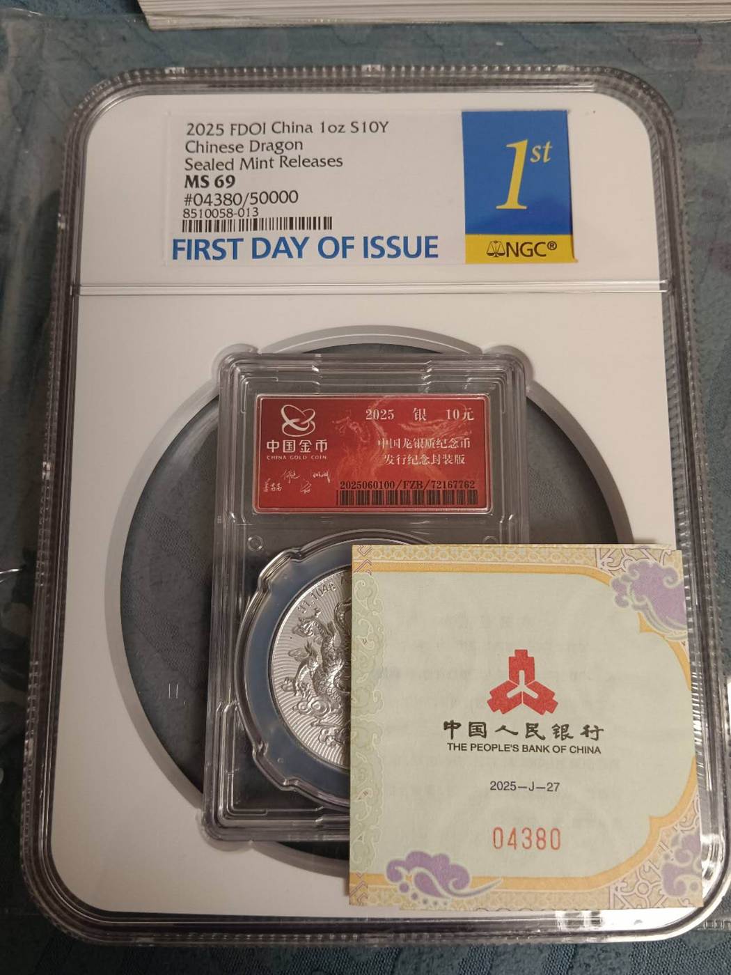 出售金总封装龙首日69分一个,