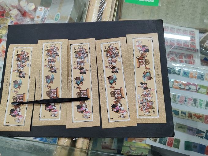 孙中山售16元金亮共15枚....壁画1售40元局部微黄共2枚.三国1售38元共5枚