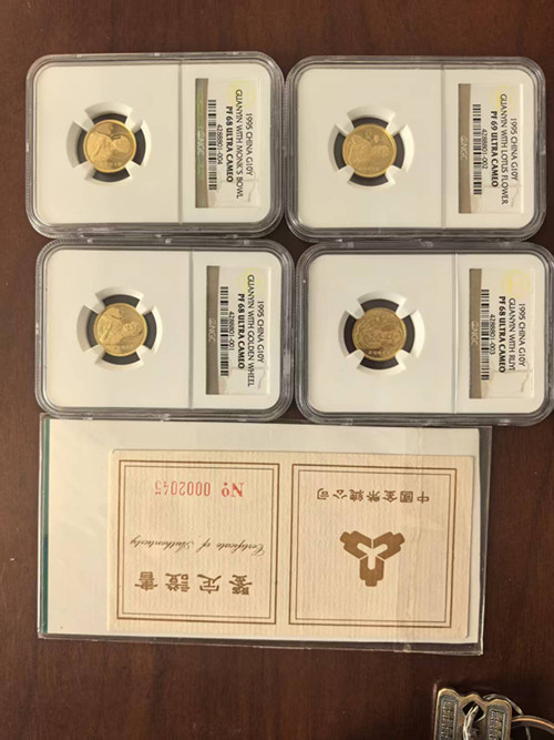 95年1/10观音一套。老评严评,三枚68一枚69 带证书,请出价17200元。