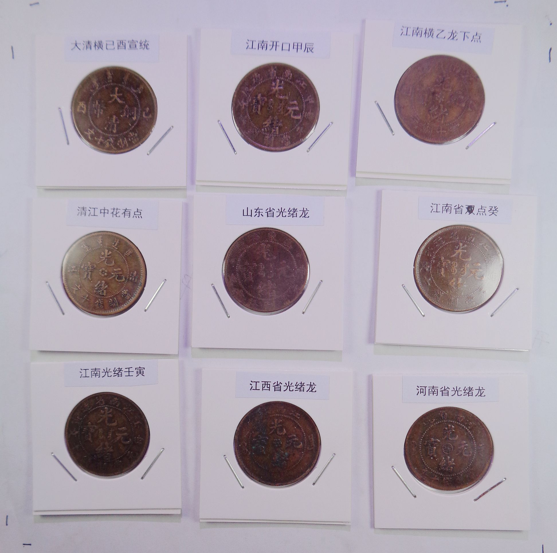 极美品9枚装版别清朝铜元,9枚一套,9个版别。568元/9枚,都是存世巧克力包浆。所售钱币终身包老包真。假*币包退赔.实物如图谱,所见即所得,款到后立马用快递发货, 本钱币协会担任一尘网营销主管22年,22年来一直坚持营销钱币业务。请场外朋友放心与我互相交易。