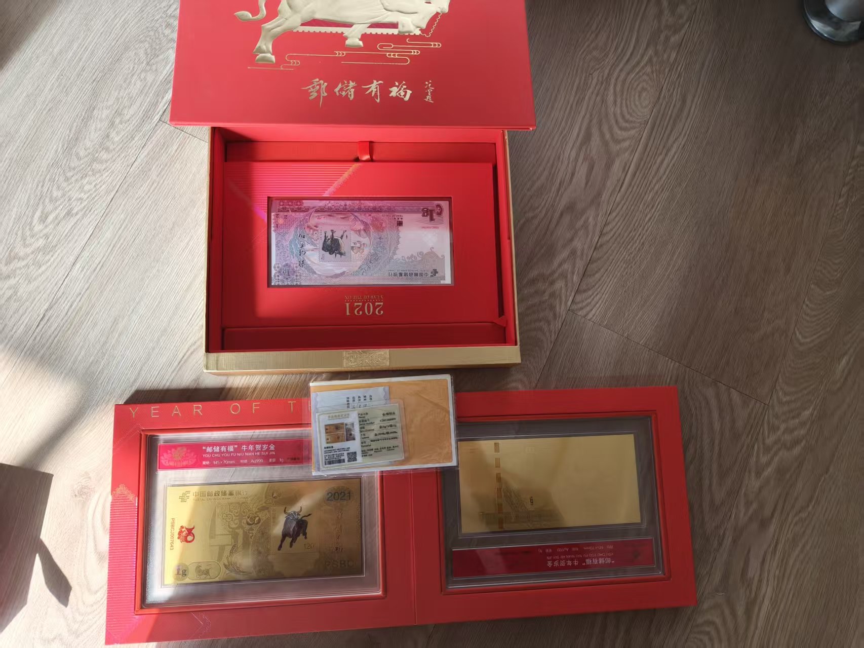 出邮储银行羊年,狗年,猪年,牛年金钞4套,牛年银钞1本。鸡年邮票金银1套(金1.3克,银3克),邮票金17年1套(含金1克,17福字币封装1个)牛年压岁金1合(含金0.2克,09牛年纪念币封装1枚)证合配件齐全。共金10.5克。银12克。通走金1050元每克,银22元每克包邮顺丰。