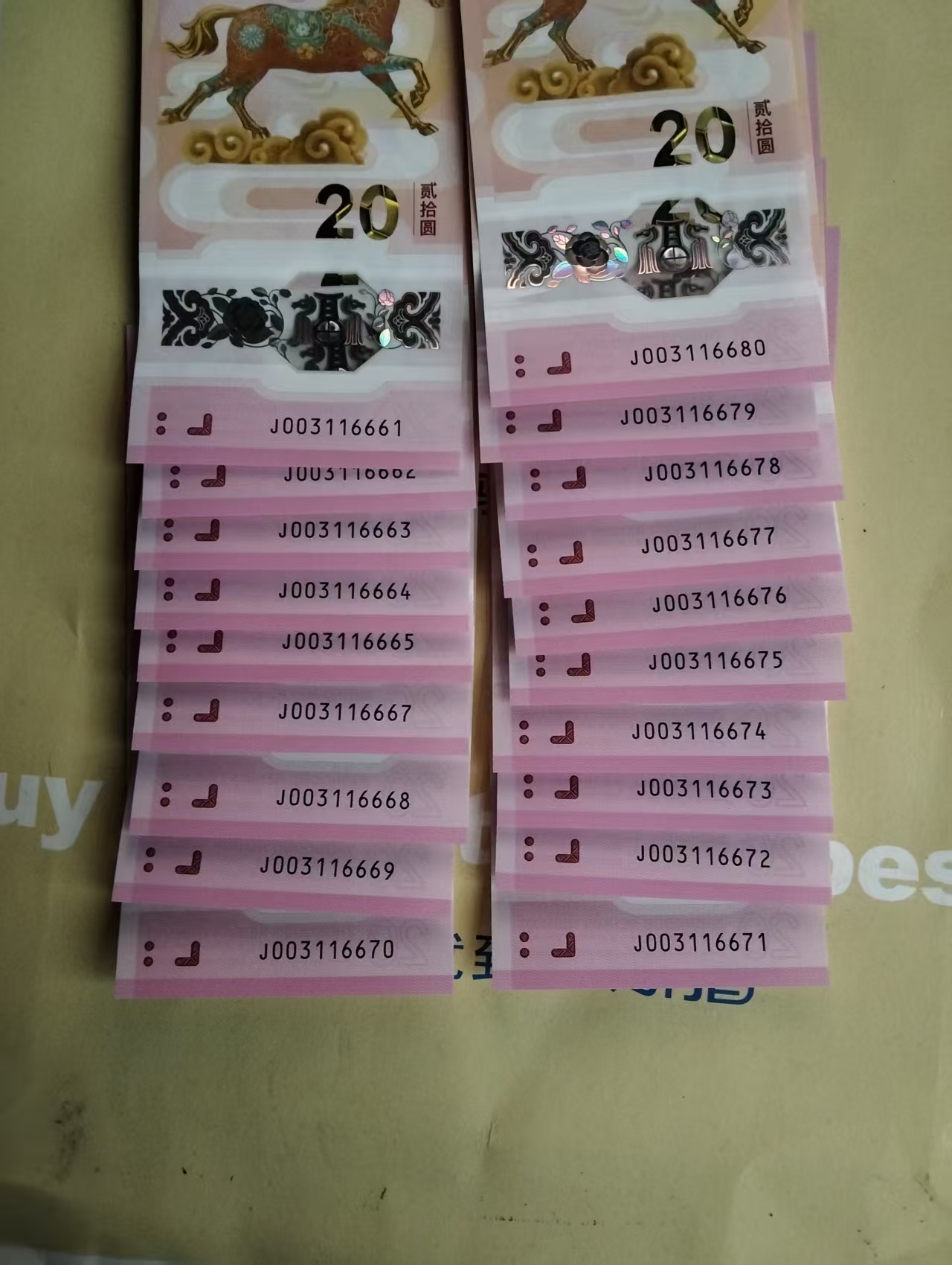 马钞金三倒置二十连 如图今天刚取出来 2200元非偏远包邮 款到发货确认涨跌无悔 能评分的来