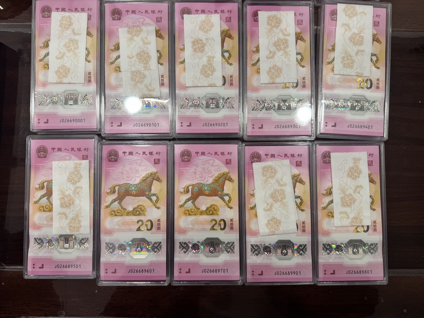 15万出马钞0269组合千连J026690001-J02669901,无347,银行一手,现货秒发,北京第二天到。