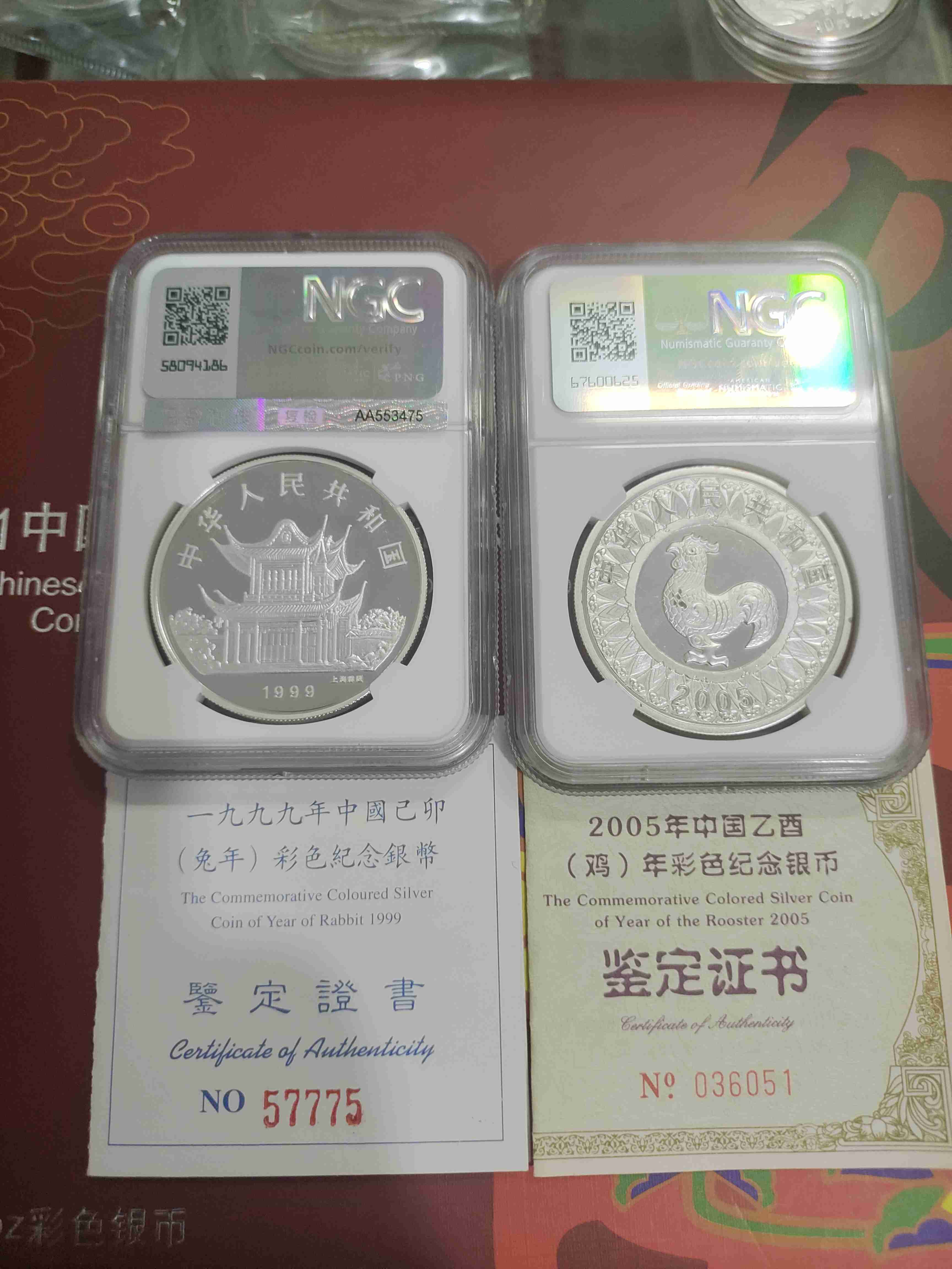 99彩银兔,05彩银鸡,高分评级,品相好,两枚1980包顺丰,议价勿扰