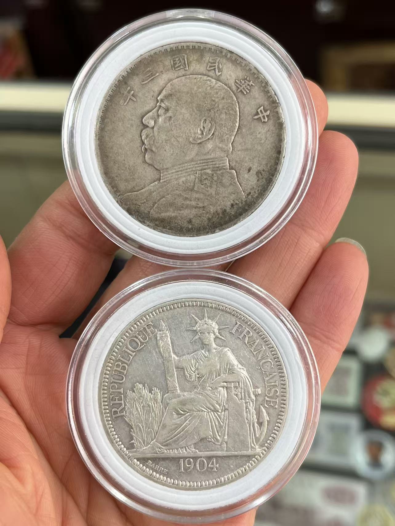 大头和27克座洋各1枚,无戳,整体品相还可以