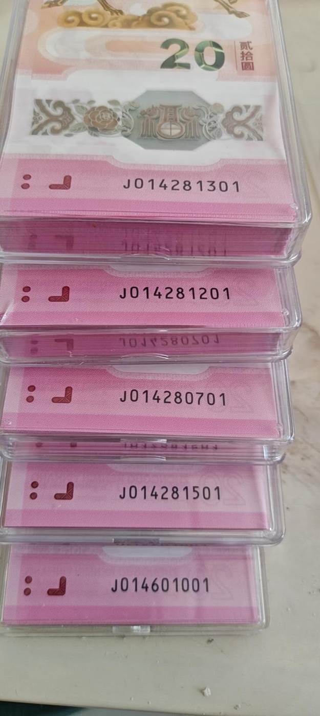 → 出售,马钞标百,一共5刀
