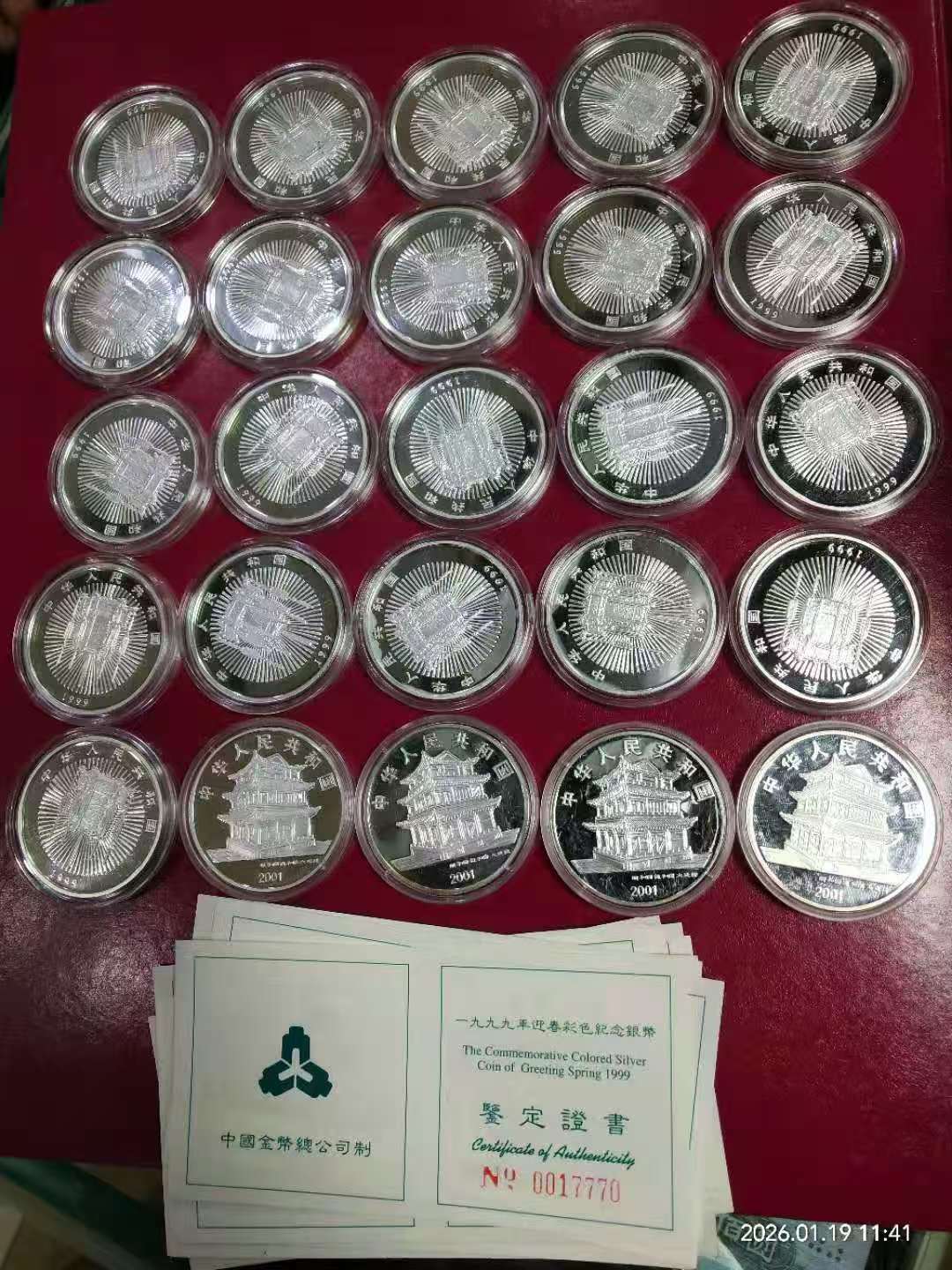 99年迎春图银币25枚(702元/枚)