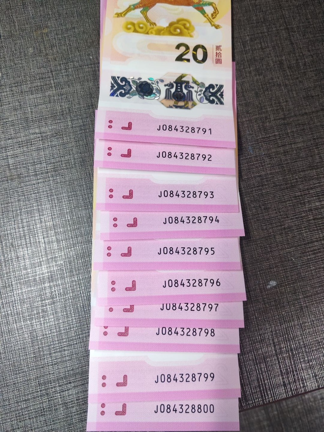 确认7组标十,二十张散钞,八卷纪念币。