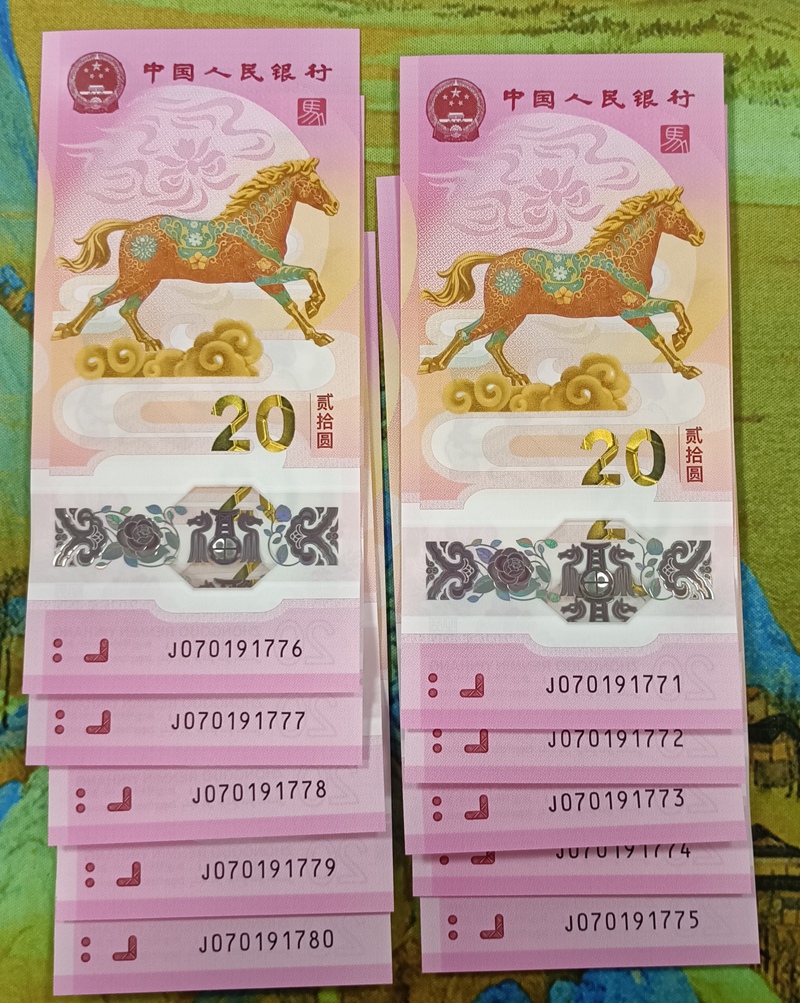 马钞标十连含豹子号777,号码J070191771-80。包邮中通,价格450元,实物如图,直接确认即可
