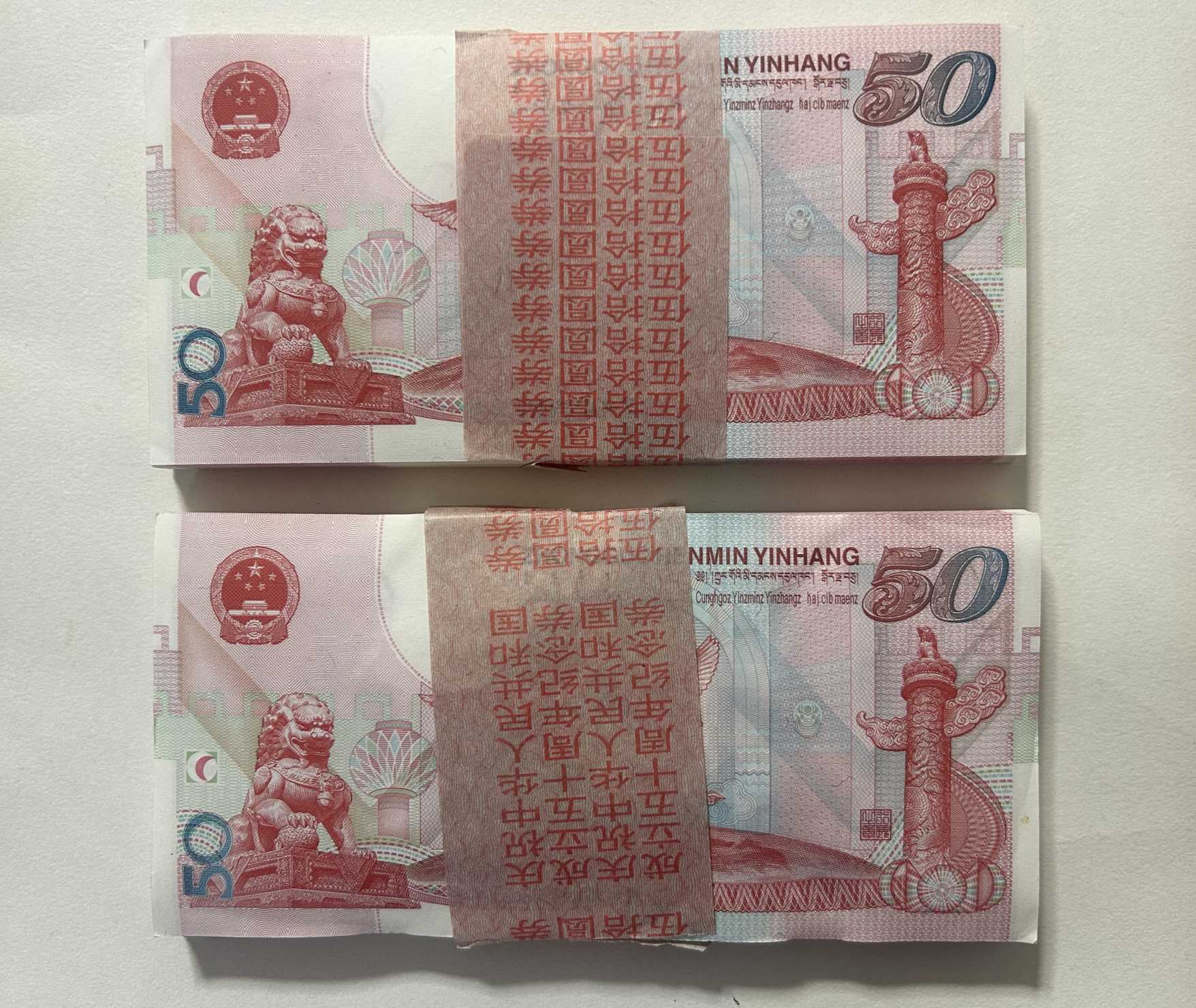 建国钞百连两刀,901前9张有印痕,灯下无斑,一起17000/刀。