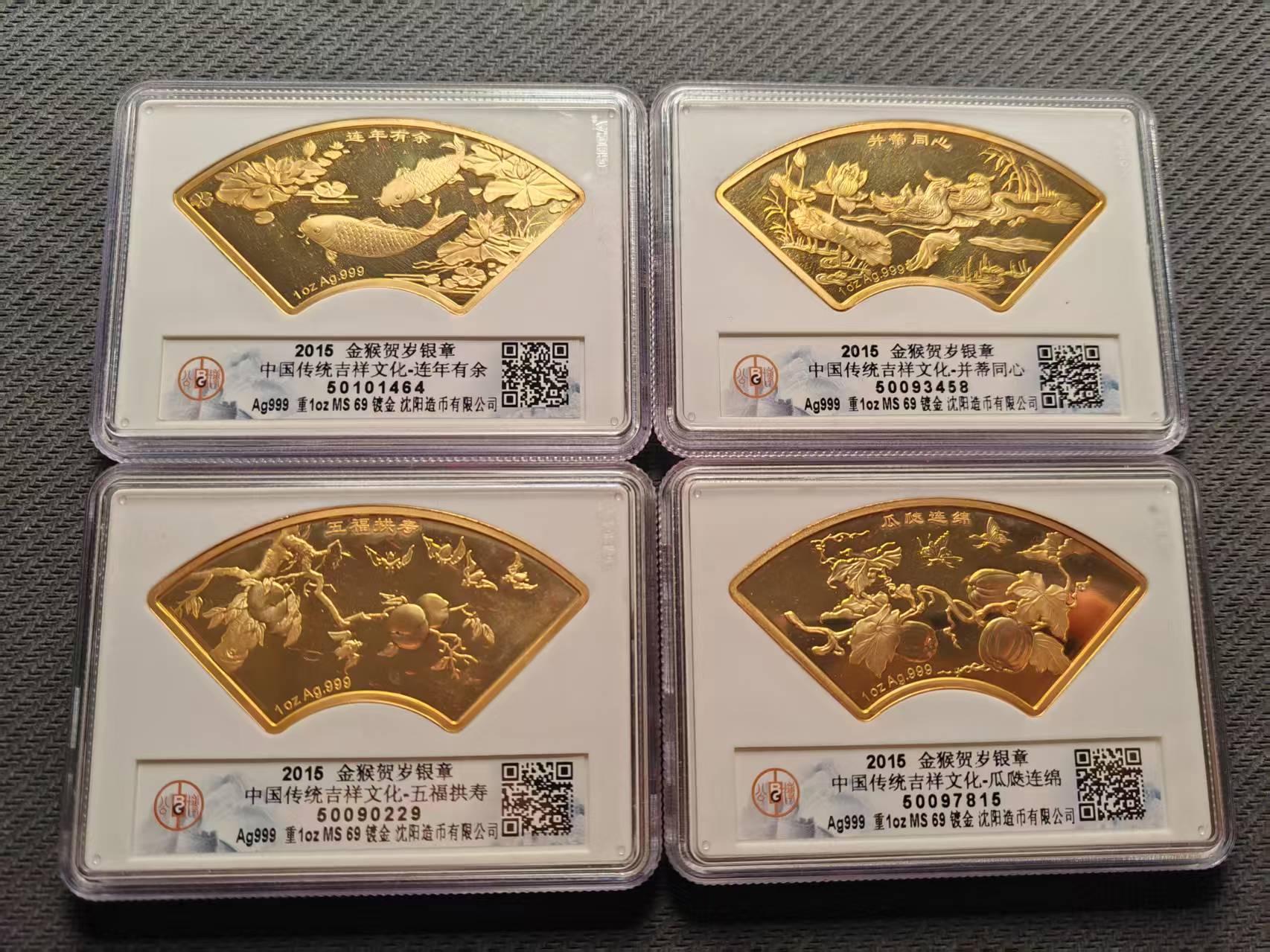 吉祥文化1盎司镀金纯银章4个,公博评级带证书礼盒:3000,包顺丰!