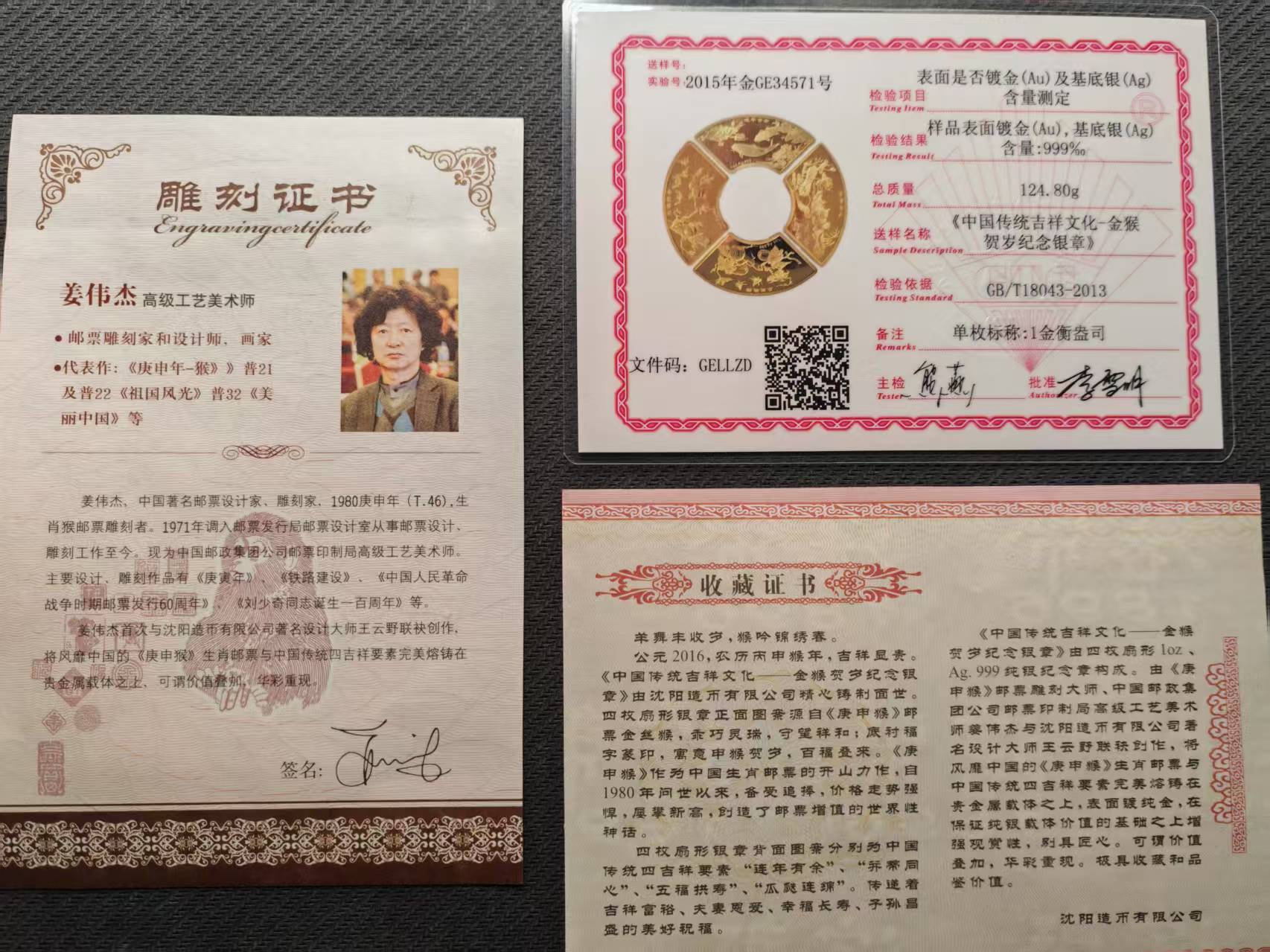 → 1盎司吉祥文化镀金纯银章4个。