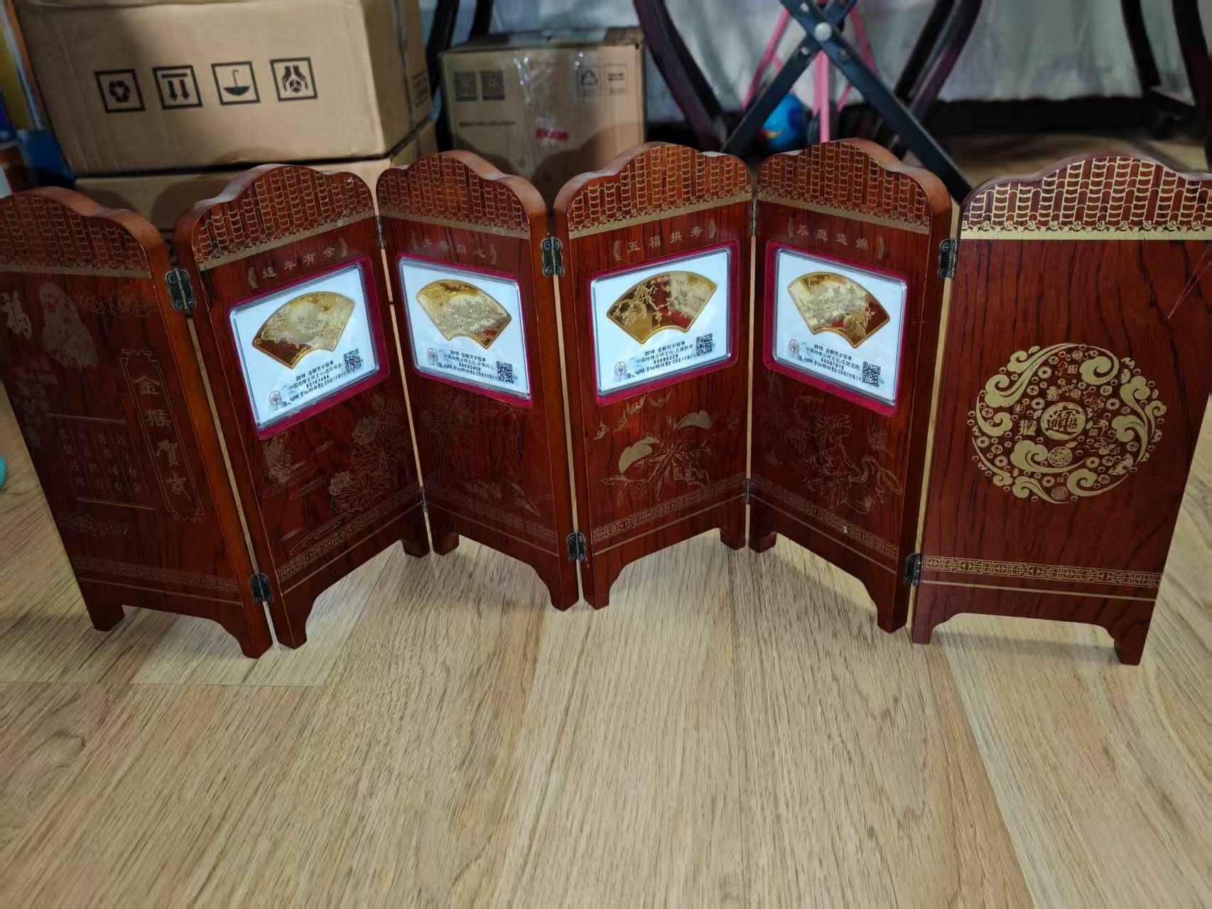 1盎司吉祥文化镀金纯银章4个。