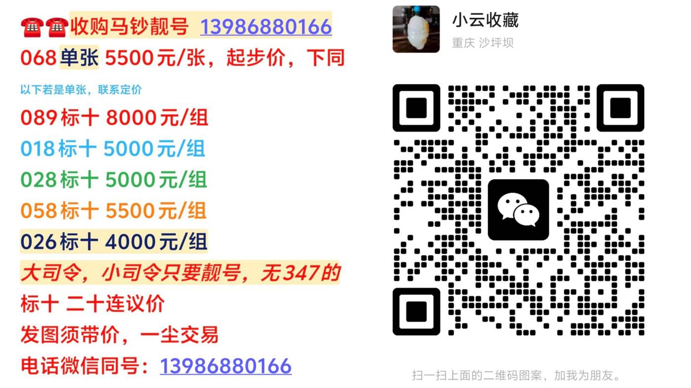 → 【收收收】马钞018.028.026.068等及大小司令号