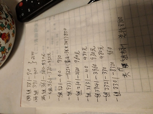无四七的381组两组1100,391两组1000,无四七的361算450每组,371组算380,21组算480,31组算430,41组算345,