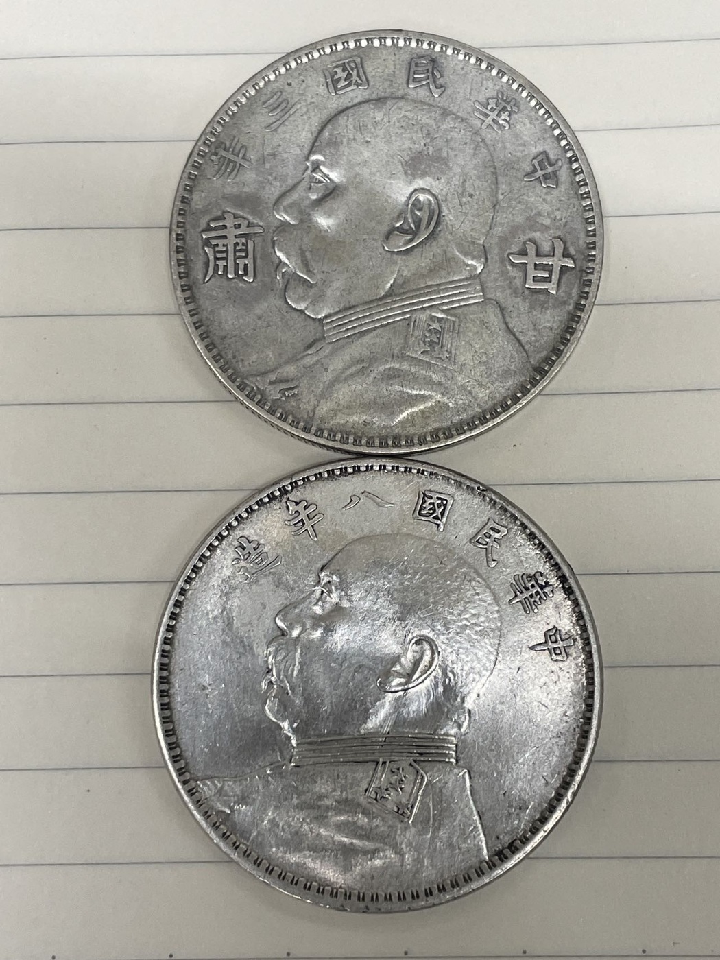 是改刻币和加字币。一个是十年改八年,一个是普通甘肃大头加"甘肃"二字。甘肃大头有一小段边齿弱打,无其它的毛病。一起1850元,包顺丰