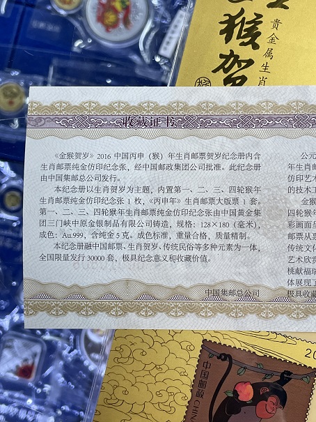 → 2016年金猴贺岁5克金邮票2张