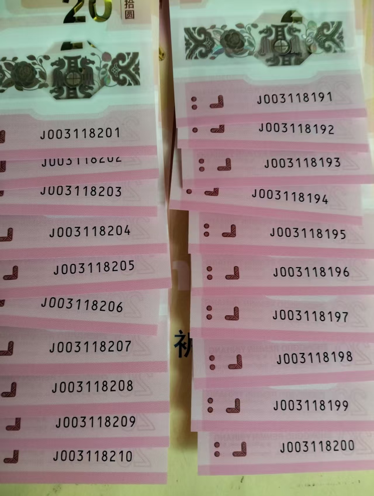 马钞生日尾20连 如图一手货20连*60
