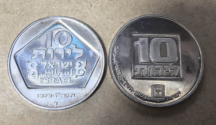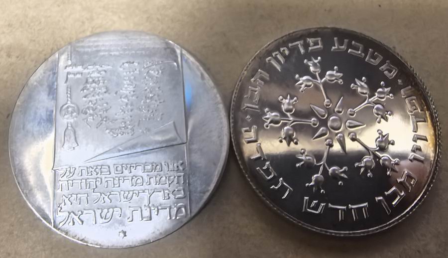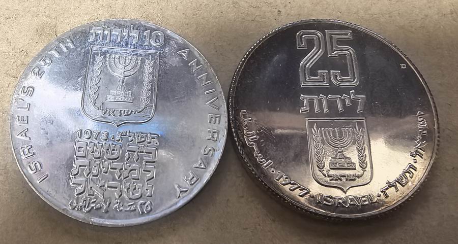 1、以色列1973年独立25周年10里拉纪念银币 90银。26.2克=520元