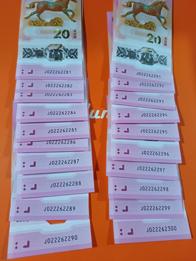 马钞全偶满号尾88标二十连号