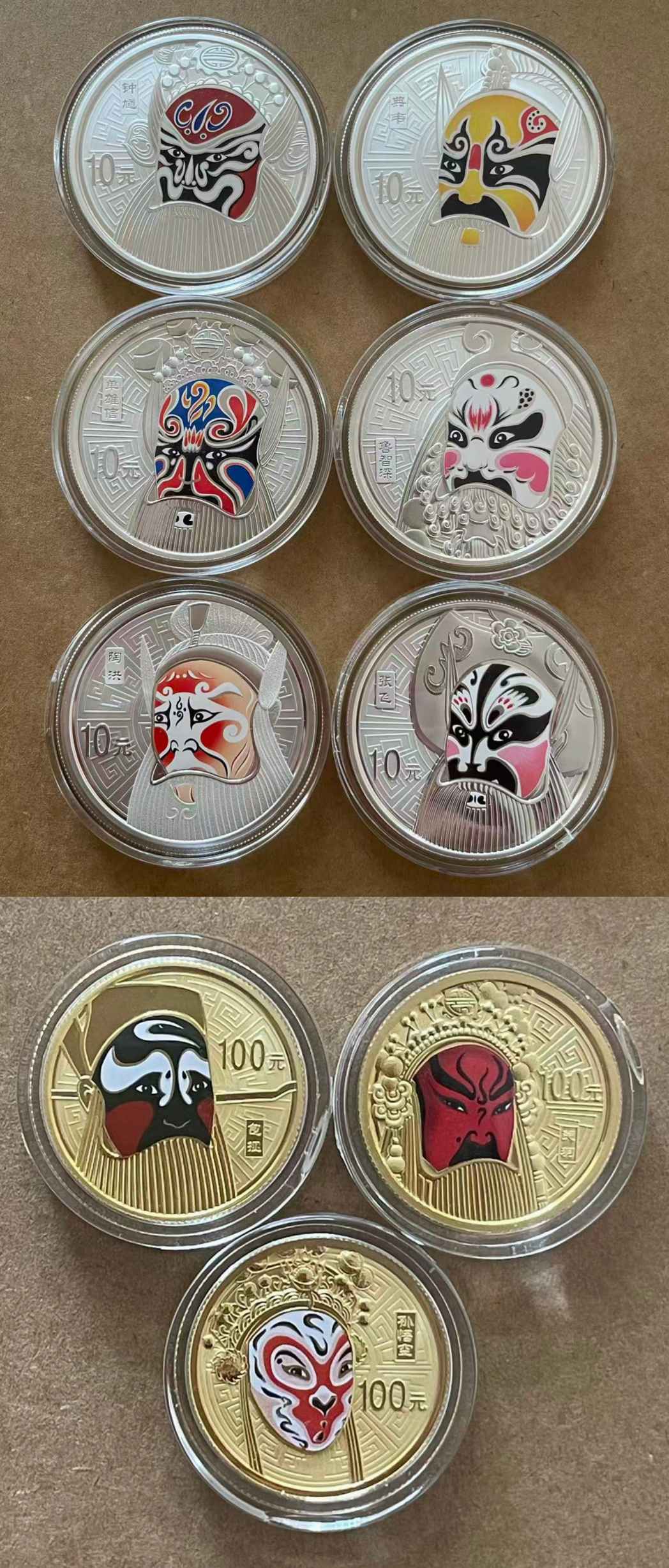 京剧脸谱一、二、三金银币,“融通金”即时价出。微信联系看细图。