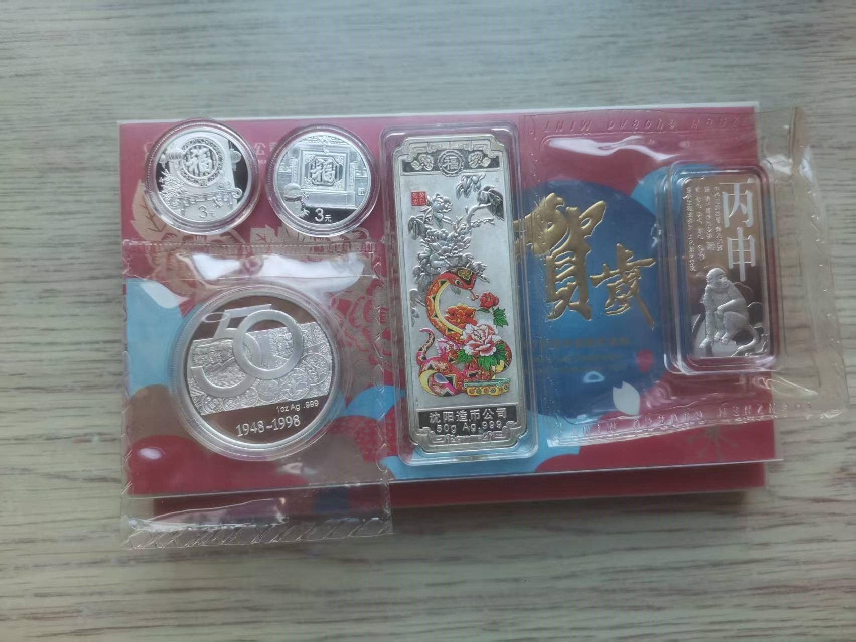 2.16年金总猴50克银条一个 沈阳宝泉50克银条1个 计1200*2 计2400元.