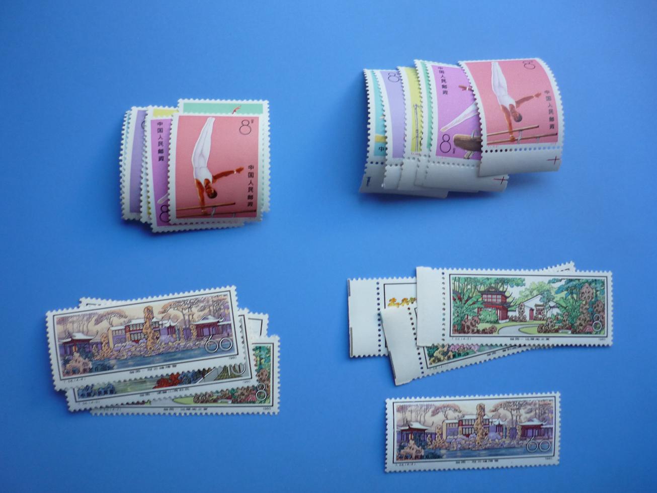 咕咚裸单齿间折25,咕咚左名右红标的齿间折30,咕咚黑标齿间折近全品32,刻舟齿间折近全品16,广阔近全品93,提供两套随机发,白药近全品22,提供两套随机发,辽彩近全品17,体操裸单极近全品183,体操顺下边齿间不折极近全品191,留园裸单近全品226,留园右面一套近全品,三枚带边齿间不折230