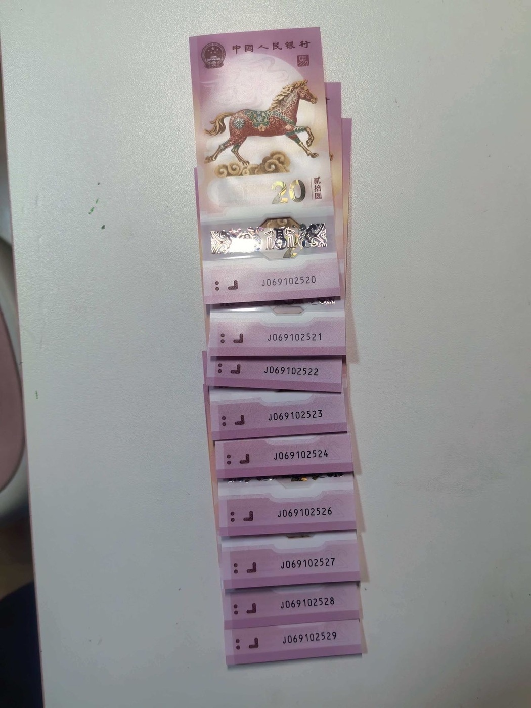 → 马钞十连号一组。
